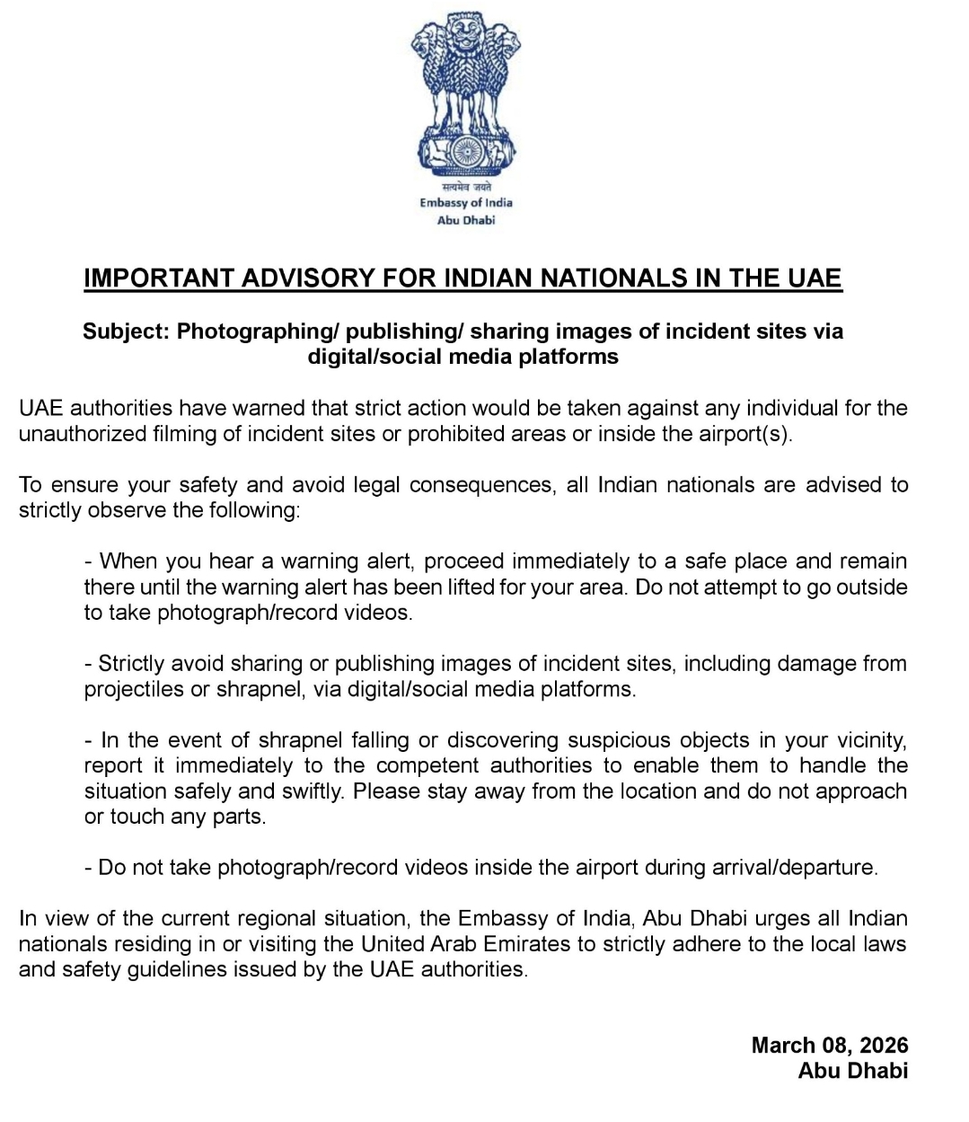 Ambassador Dr. Deepak Mittal interacted with Indian students from various universities in the UAE (January 21, 2026).